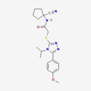 N-(1-cyanocyclopentyl)-2-[[5-(4-methoxyphenyl)-4-propan-2-yl-1,2,4-triazol-3-yl]sulfanyl]acetamide is a synthetic compound that has garnered attention in pharmacological research due to its potential therapeutic applications. This article explores the biological activity of this compound, focusing on its mechanisms of action, efficacy in various biological systems, and relevant case studies.