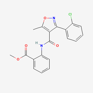 The synthesis of Methyl 2-((3-(2-chlorophenyl)-5-methylisoxazol-4-YL)carbonylamino)benzoate typically involves multiple steps, starting with the preparation of the isoxazole ring. One common method is the cyclization of appropriate precursors under acidic or basic conditions. The chlorophenyl group can be introduced through electrophilic aromatic substitution reactions, while the benzoate ester is formed via esterification reactions.