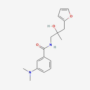 3-(Dimethylamino)-N-(3-(furan-2-yl)-2-hydroxy-2-methylpropyl)benzamide is a compound of interest in medicinal chemistry due to its potential therapeutic applications. Its structure includes a dimethylamino group, a furan ring, and a benzamide moiety, which are known to contribute to various biological activities.