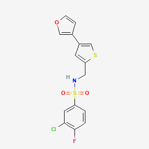 3-chloro-4-fluoro-N-{[4-(furan-3-yl)thiophen-2-yl]methyl}benzene-1-sulfonamide is a complex organic compound that features a combination of aromatic rings and heterocycles