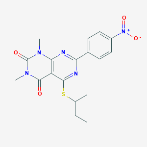 5-(sec-butylthio)-1,3-dimethyl-7-(4-nitrophenyl)pyrimido[4,5-d]pyrimidine-2,4(1H,3H)-dione is a unique compound known for its complex structure and potential applications in various fields such as chemistry, biology, medicine, and industry. This compound belongs to the class of pyrimidopyrimidines, a group known for their diverse chemical activities and potential therapeutic uses.