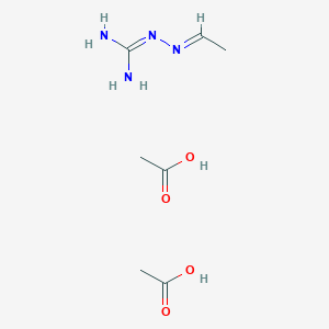 The mechanism of action of acetic acid;2-[(E)-ethylideneamino]guanidine involves its interaction with molecular targets and pathways in the body. Guanidine derivatives are known to interact with proteins and enzymes, affecting their activity and function. The compound may also interact with nucleic acids, influencing gene expression and cellular processes . The specific molecular targets and pathways involved depend on the particular application and the conditions under which the compound is used.