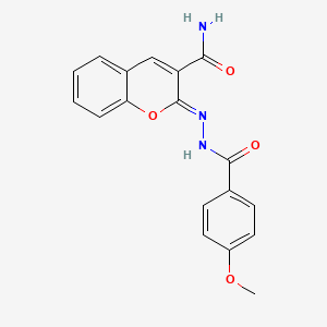 (2Z)-2-{[(4-methoxyphenyl)formamido]imino}-2H-chromene-3-carboxamide is a complex organic compound that belongs to the class of chromene derivatives Chromenes are known for their diverse biological activities and have been extensively studied for their potential therapeutic applications