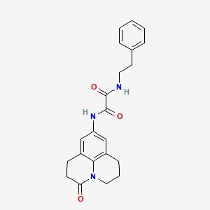 Chemistry: In chemistry, N1-(3-oxo-1,2,3,5,6,7-hexahydropyrido[3,2,1-ij]quinolin-9-yl)-N2-phenethyloxalamide serves as a precursor for the synthesis of more complex molecules. Its unique structure allows for its use in studying reaction mechanisms and developing new synthetic methodologies.