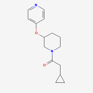 The mechanism of action of 2-Cyclopropyl-1-(3-(pyridin-4-yloxy)piperidin-1-yl)ethanone involves its interaction with specific molecular targets, such as enzymes or receptors. The compound may bind to these targets, altering their activity and leading to various biological effects. The exact pathways and molecular targets can vary depending on the specific application and context.