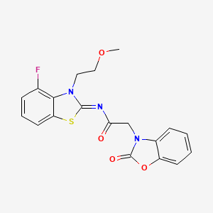 (E)-N-(4-fluoro-3-(2-methoxyethyl)benzo[d]thiazol-2(3H)-ylidene)-2-(2-oxobenzo[d]oxazol-3(2H)-yl)acetamide