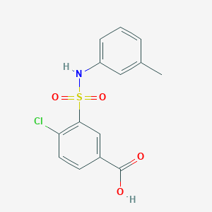 The mechanism of action of 4-chloro-3-[(3-methylphenyl)sulfamoyl]benzoic acid involves its interaction with specific molecular targets, such as enzymes or receptors. The sulfamoyl group can form hydrogen bonds with active sites, while the chloro and methylphenyl groups can enhance binding affinity through hydrophobic interactions. These interactions can modulate the activity of the target molecules, leading to various biological effects.