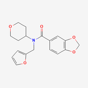 The mechanism by which N-(furan-2-ylmethyl)-N-(tetrahydro-2H-pyran-4-yl)benzo[d][1,3]dioxole-5-carboxamide exerts its effects involves its interaction with specific molecular targets and pathways. The compound may bind to enzymes or receptors, modulating their activity and influencing cellular processes. The exact mechanism can vary depending on the biological context and the specific target involved.