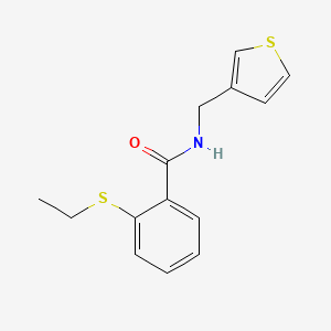 2-(ethylthio)-N-(thiophen-3-ylmethyl)benzamide is an organic compound characterized by a benzamide structure with an ethylthio group and a thiophen-3-ylmethyl moiety. This compound has garnered attention in various fields, particularly in chemistry, biology, and industry due to its unique properties and potential applications.