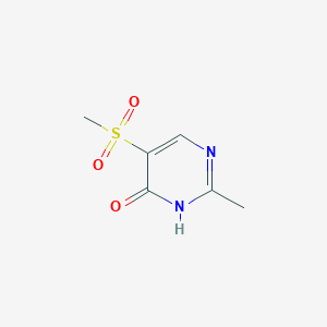 The mechanism of action of 2-Methyl-5-(methylsulfonyl)pyrimidin-4(3H)-one involves its interaction with specific molecular targets. These targets may include enzymes, receptors, or nucleic acids. The compound can inhibit enzyme activity by binding to the active site or allosteric site, thereby preventing substrate binding or catalysis. In receptor-mediated pathways, it can act as an agonist or antagonist, modulating the receptor’s activity and downstream signaling pathways .