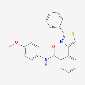 The mechanism of action of N-(4-methoxyphenyl)-2-(2-phenyl-1,3-thiazol-4-yl)benzamide depends on its specific biological target. It may interact with enzymes, receptors, or other proteins, modulating their activity and leading to various biological effects. The exact molecular targets and pathways involved would require detailed biochemical studies.