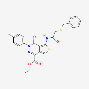 Ethyl 5-(2-(benzylthio)acetamido)-4-oxo-3-(p-tolyl)-3,4-dihydrothieno[3,4-d]pyridazine-1-carboxylate is a thienopyridazine derivative that has garnered attention in medicinal chemistry due to its potential biological activities. This compound features a complex structure that includes a thieno[3,4-d]pyridazine core, which is known for its diverse pharmacological properties.