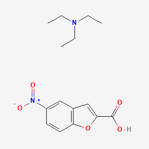 The mechanism of action of Triethylammonium 5-nitrobenzofuran-2-carboxylate is primarily related to its ability to interact with biological molecules. The nitro group can undergo reduction to form an amino group, which can then participate in various biochemical reactions. The benzofuran ring structure allows for interactions with enzymes and receptors, influencing various biological pathways .