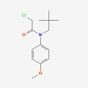 The synthesis of 2-Chloro-N-(2,2-dimethylpropyl)-N-(4-methoxyphenyl)acetamide typically involves the reaction of 2-chloroacetyl chloride with N-(2,2-dimethylpropyl)-N-(4-methoxyphenyl)amine. The reaction is carried out in the presence of a base, such as triethylamine, to neutralize the hydrochloric acid formed during the reaction. The reaction is usually conducted at low temperatures to control the rate of reaction and to prevent side reactions.