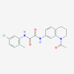 This compound is a bis-amide derivative featuring a 1-acetyl-1,2,3,4-tetrahydroquinolin-7-yl moiety linked via an ethanediamide bridge to a 5-chloro-2-methylphenyl group. Such structural features are common in enzyme inhibitors, particularly those targeting carbonic anhydrases (CAs) or kinases .