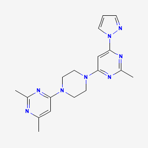 4-[4-(2,6-dimethylpyrimidin-4-yl)piperazin-1-yl]-2-methyl-6-(1H-pyrazol-1-yl)pyrimidine is a complex organic compound that belongs to the class of heterocyclic compounds. This compound features a pyrimidine ring substituted with a piperazine and a pyrazole ring, making it a molecule of interest in various fields of scientific research due to its potential biological activities.