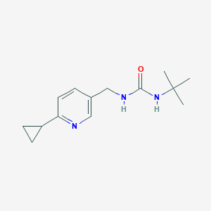 The synthesis of 3-Tert-butyl-1-[(6-cyclopropylpyridin-3-yl)methyl]urea typically involves multiple steps, starting with the preparation of the cyclopropylpyridinyl intermediate. This intermediate is then reacted with tert-butyl isocyanate under controlled conditions to form the final product. The reaction conditions often include the use of solvents such as dichloromethane and catalysts to facilitate the reaction.