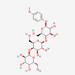 InChI=1S/C25H38O17/c1-36-9-2-4-10(5-3-9)37-23-19(34)16(31)21(12(7-27)39-23)42-25-20(35)17(32)22(13(8-28)40-25)41-24-18(33)15(30)14(29)11(6-26)38-24/h2-5,11-35H,6-8H2,1H3/t11-,12-,13-,14-,15-,16+,17+,18-,19-,20-,21+,22-,23+,24+,25-/m0/s1 |