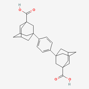 3,3'-(1,4-Phenylene)diadamantane-1-carboxylic acid is a complex organic compound belonging to the class of diamondoids, which are characterized by their unique cage-like structures. This compound has garnered attention due to its potential biological activities and applications in medicinal chemistry.