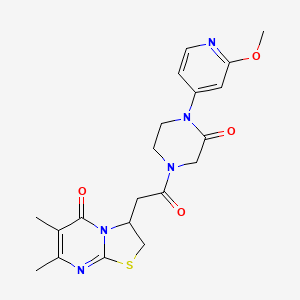 4-(2-{6,7-dimethyl-5-oxo-2H,3H,5H-[1,3]thiazolo[3,2-a]pyrimidin-3-yl}acetyl)-1-(2-methoxypyridin-4-yl)piperazin-2-one is a complex organic compound characterized by its unique thiazolopyrimidine and piperazine structures