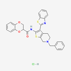 The cellular effects of N-(3-(benzo[d]thiazol-2-yl)-6-benzyl-4,5,6,7-tetrahydrothieno[2,3-c]pyridin-2-yl)-2,3-dihydrobenzo[b][1,4]dioxine-2-carboxamide hydrochloride are not well-documented. Benzothiazole derivatives have been shown to have inhibitory effects against M. tuberculosis, suggesting that they may influence cell function, including cell signaling pathways, gene expression, and cellular metabolism
