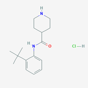 The mechanism of action of N-(2-Tert-butylphenyl)piperidine-4-carboxamide hydrochloride involves its interaction with specific molecular targets and pathways. The compound is known to inhibit certain enzymes and receptors, leading to various biological effects. For example, it has been shown to exhibit antiviral activity by inhibiting the replication of human coronaviruses . The exact molecular targets and pathways involved may vary depending on the specific application and context of use .