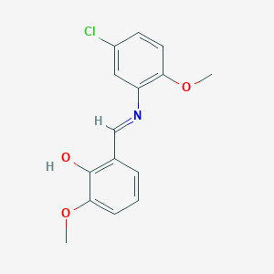 The synthesis of 2-{(E)-[(5-chloro-2-methoxyphenyl)imino]methyl}-6-methoxyphenol typically involves the condensation reaction between 5-chloro-2-methoxyaniline and 2-hydroxy-3-methoxybenzaldehyde. The reaction is usually carried out in an ethanol solvent under reflux conditions for several hours. The resulting product is then purified by recrystallization from ethanol .