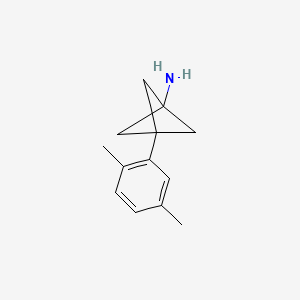 The uniqueness of this compound lies in its combination of the bicyclo[1.1.1]pentane core with both the 2,5-dimethylphenyl and amine groups, which imparts distinct chemical and biological properties.