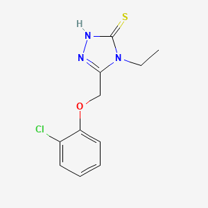 The synthesis of 5-[(2-chlorophenoxy)methyl]-4-ethyl-4H-1,2,4-triazole-3-thiol typically involves multi-step reactions starting from 4-chlorophenol and ethyl 2-chloroacetate . The process includes: