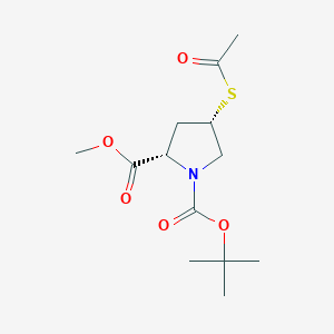 The mechanism by which 1-tert-butyl 2-methyl (2S,4S)-4-(acetylsulfanyl)pyrrolidine-1,2-dicarboxylate exerts its effects depends on its specific application. In medicinal chemistry, it may interact with biological targets such as enzymes or receptors, modulating their activity. The molecular pathways involved can include inhibition or activation of specific enzymes, binding to receptor sites, or altering cellular signaling pathways.
