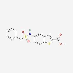 The mechanism of action of Methyl 5-[(benzylsulfonyl)amino]-1-benzothiophene-2-carboxylate involves its interaction with specific molecular targets. The benzothiophene core can interact with enzymes or receptors, modulating their activity. The sulfonyl group can enhance the compound’s binding affinity and specificity for its targets, leading to various biological effects.
