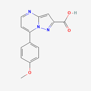 Synthetic Routes and Reaction Conditions: The synthesis of 7-(4-Methoxyphenyl)pyrazolo[1,5-a]pyrimidine-2-carboxylic acid typically involves the cyclization of appropriate precursors under controlled conditions One common method includes the reaction of 4-methoxyphenylhydrazine with ethyl acetoacetate to form an intermediate, which then undergoes cyclization with formamide to yield the desired pyrazolo[1,5-a]pyrimidine structure