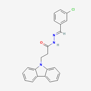 (E)-3-(9H-carbazol-9-yl)-N’-(3-chlorobenzylidene)propanehydrazide is unique due to the specific combination of the carbazole moiety, chlorobenzylidene group, and propanehydrazide linkage. This combination imparts distinct chemical and biological properties, making it a valuable compound for various applications.