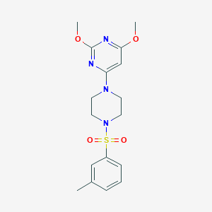 2,4-Dimethoxy-6-(4-(m-tolylsulfonyl)piperazin-1-yl)pyrimidine is a pyrimidine derivative that has garnered attention for its diverse biological activities. This compound is characterized by the presence of a piperazine moiety and a methoxy-substituted pyrimidine core, which contribute to its potential therapeutic applications.