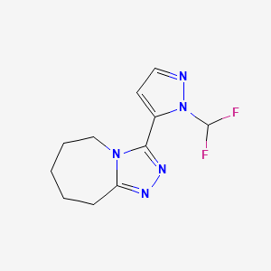 The mechanism of action of 3-(1-(Difluoromethyl)-1H-pyrazol-5-yl)-6,7,8,9-tetrahydro-5H-[1,2,4]triazolo[4,3-a]azepine involves its interaction with specific molecular targets and pathways. The compound is known to inhibit certain enzymes and receptors, leading to its biological effects. For example, it may inhibit kinases involved in cell signaling pathways, thereby exerting antiproliferative effects on cancer cells. The exact molecular targets and pathways can vary depending on the specific application and context.
