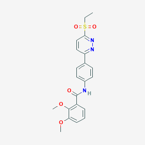 The synthesis of N-(4-(6-(ethylsulfonyl)pyridazin-3-yl)phenyl)-2,3-dimethoxybenzamide typically involves multiple steps, starting with the formation of the pyridazine ring. The process often includes the reaction of hydrazine with diketones or esters to form the pyridazine core.