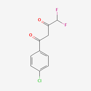 The synthesis of 1-(4-Chlorophenyl)-4,4-difluorobutane-1,3-dione typically involves the reaction of 4-chlorobenzaldehyde with difluoroacetic acid in the presence of a base such as sodium hydroxide. The reaction proceeds through a series of steps including aldol condensation, followed by dehydration and subsequent fluorination to yield the desired product.