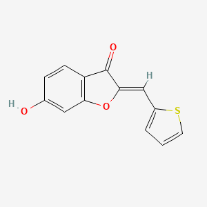 The synthesis of (2Z)-6-hydroxy-2-(2-thienylmethylene)-1-benzofuran-3(2H)-one typically involves the condensation of 6-hydroxy-1-benzofuran-3(2H)-one with 2-thiophenecarboxaldehyde under basic conditions. The reaction is usually carried out in the presence of a base such as sodium hydroxide or potassium carbonate, and the mixture is refluxed in a suitable solvent like ethanol or methanol .
