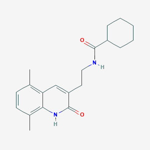 N-[2-(5,8-dimethyl-2-oxo-1,2-dihydroquinolin-3-yl)ethyl]cyclohexanecarboxamide is a complex organic compound that belongs to the class of quinoline derivatives Quinoline derivatives are known for their diverse biological activities and are widely used in medicinal chemistry