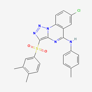 7-Chloro-3-(3,4-dimethylbenzenesulfonyl)-N-(4-methylphenyl)-[1,2,3]triazolo[1,5-a]quinazolin-5-amine is a synthetic compound belonging to the class of triazoloquinazolines. This compound has garnered attention in medicinal chemistry due to its potential biological activities, particularly as an inhibitor of various protein kinases involved in critical cellular processes and disease pathways.