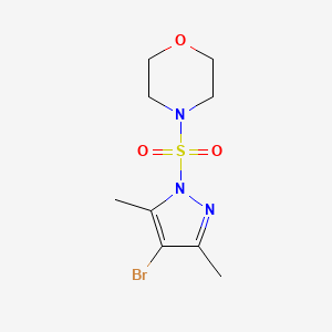 The mechanism of action of 4-(4-Bromo-3,5-dimethylpyrazol-1-yl)sulfonylmorpholine involves its interaction with specific molecular targets. The sulfonyl group can form strong interactions with amino acid residues in proteins, potentially inhibiting enzyme activity or altering protein function . The bromine and methyl groups on the pyrazole ring may also contribute to the compound’s binding affinity and specificity .