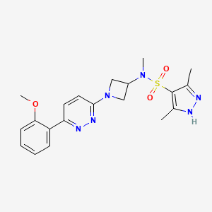 N-{1-[6-(2-methoxyphenyl)pyridazin-3-yl]azetidin-3-yl}-N,3,5-trimethyl-1H-pyrazole-4-sulfonamide is a complex organic compound with the molecular formula C20H24N6O3S and a molecular weight of 428.51. This compound is characterized by its unique structure, which includes a pyridazinyl group, an azetidinyl group, and a pyrazole sulfonamide moiety. It is of interest in various fields of scientific research due to its potential biological and chemical properties.