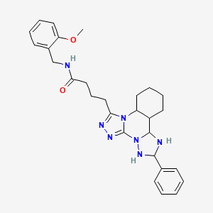 InChI=1S/C28H35N7O2/c1-37-23-15-8-5-12-20(23)18-29-25(36)17-9-16-24-31-32-28-34(24)22-14-7-6-13-21(22)27-30-26(33-35(27)28)19-10-3-2-4-11-19/h2-5,8,10-12,15,21-22,26-27,30,33H,6-7,9,13-14,16-18H2,1H3,(H,29,36) | |