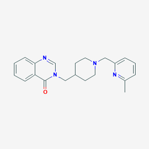 The synthesis of 3-({1-[(6-Methylpyridin-2-yl)methyl]piperidin-4-yl}methyl)-3,4-dihydroquinazolin-4-one typically involves multi-step organic reactions. One common synthetic route starts with the preparation of the key intermediate, 6-methylpyridin-2-ylmethanol, which is then reacted with piperidine to form the piperidinylmethyl derivative. This intermediate undergoes further cyclization with 2-aminobenzamide under acidic conditions to yield the final quinazolinone product .