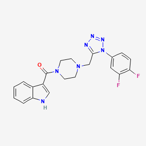 The compound (4-((1-(3,4-difluorophenyl)-1H-tetrazol-5-yl)methyl)piperazin-1-yl)(1H-indol-3-yl)methanone , identified by its CAS number 941874-99-3, has garnered interest in various scientific fields due to its potential biological activities and applications. This article explores its synthesis, biological evaluations, and potential therapeutic uses based on recent research findings.
