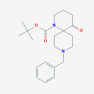 The synthesis of tert-butyl 9-benzyl-5-oxo-1,9-diazaspiro[5.5]undecane-1-carboxylate typically involves multiple steps, starting from readily available precursors. One common synthetic route includes the following steps: