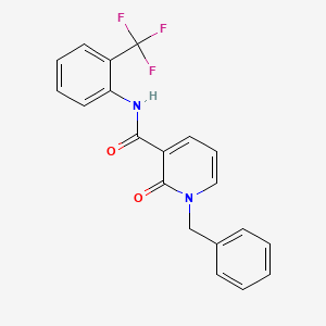 The mechanism of action of 1-benzyl-2-oxo-N-[2-(trifluoromethyl)phenyl]-1,2-dihydropyridine-3-carboxamide involves its interaction with specific molecular targets. The compound may bind to enzymes or receptors, modulating their activity and triggering downstream signaling pathways. The exact molecular targets and pathways involved depend on the specific application and context of use.