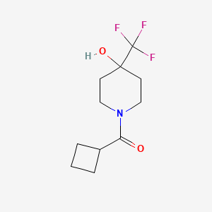 The mechanism by which 1-cyclobutanecarbonyl-4-(trifluoromethyl)piperidin-4-ol exerts its effects involves interactions with specific molecular targets. These targets may include enzymes, receptors, or other proteins involved in biological pathways. The compound’s structure allows it to bind to these targets, modulating their activity and leading to various biological effects.