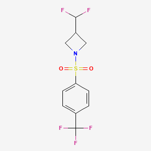 The synthesis of 3-(difluoromethyl)-1-[4-(trifluoromethyl)benzenesulfonyl]azetidine typically involves the reaction of difluoromethyl azetidine with 4-(trifluoromethyl)phenyl sulfonyl chloride under controlled conditions. The reaction is usually carried out in the presence of a base such as triethylamine to neutralize the hydrochloric acid formed during the reaction. The reaction mixture is then purified using column chromatography to obtain the desired product .