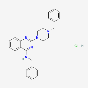 N-benzyl-2-(4-benzylpiperazin-1-yl)quinazolin-4-amine Hydrochloride is a synthetic compound that belongs to the class of quinazoline derivatives. These compounds are known for their diverse biological activities and have been extensively studied for their potential therapeutic applications. The compound’s structure includes a quinazoline core, which is a bicyclic system consisting of a benzene ring fused to a pyrimidine ring, and a piperazine ring substituted with benzyl groups.